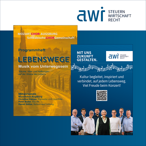 Die Förderung regionaler Initiativen und Projekte ist ein wichtiger Bestandteil nachhaltigen Engagements der awi in Augsburg. Dazu zählt insbesondere die Unterstützung kultureller Angebote, die Menschen verbinden und Impulse für die Gesellschaft setzen. Unsere Kanzlei ist stolz den Mozartchor Augsburg e.V., der seit Jahren für anspruchsvolle und zugleich publikumsnahe Konzertformate bekannt ist, zu unterstützen und unseren Beitrag zur kulturellen Vielfalt zu leisten. Unter der Leitung von Daniel Böhm gelingt es dem Chor, klassische Werke mit modernen Elementen zu verbinden und damit ein breites Publikum anzusprechen.